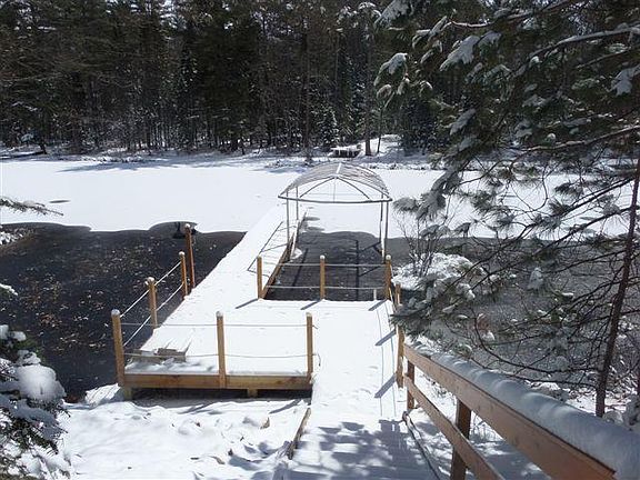 Lovely location on the Eagle River Chain. Nestled on the Eagle River, this modern three bedroom home has been renovated inside and out in 2009. All custom exterior features of new roof, cement board siding, blown-in insulation and new walls, new decking, doors, windows, and new roof on garage. The interior will bring a smile, with updated features of new flooring, custom cabinetry, stainless steel appliance, granite counters and an easy floor plan for entertaining. The master suite addition includes a walk-in closet, private bath and new poured basement used for storage. With the level approach to the water, and permanent dock, this waterfront can be enjoyed year round with open waters and wildlife galore. Boaters can enjoy the very short ride north into Cranberry Lake of the Eagle River Chain, or travel south and over the dam to the Three Lakes side of the Chain. A full day of fun can be had with cruising the 28 lakes.