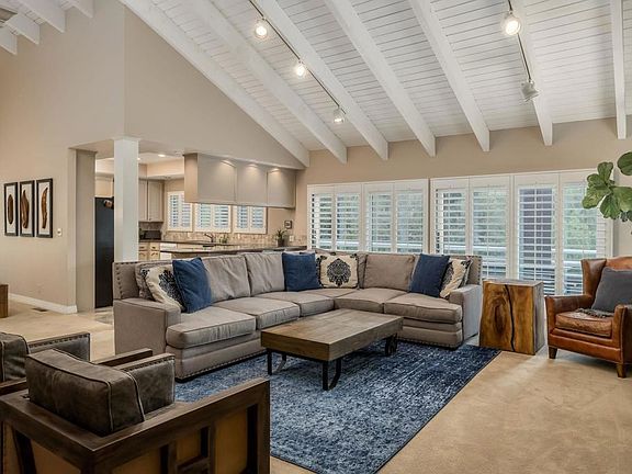 Discover The Village, nestled in the tranquil landscapes of Coto de Caza's guard-gated community. This delightful 4-bed, 2.5-bath home showcases hills and mountain views, boasting vaulted ship-lapped ceilings, a majestic stone fireplace, and a convenient single-story living layout. Immerse yourself in the rustic charm of decks and balconies surrounded by lush mature greenery. A mid-century style stone staircase leads to a welcoming entry. The bright, open floorplan features a great room with access to a covered deck, a central bar, upgraded kitchen, and a formal dining area. Downstairs, a three-car garage with a laundry area completes the space. The primary suite, with vaulted ceilings, a walk-in closet, a viewing deck, and an updated bathroom, offers a serene retreat. Three additional bedrooms with custom built-in cabinetry round out this meticulously maintained and updated home, ready for immediate occupancy or to be shaped into your modern sanctuary. Coto de Caza, celebrated for its guard-gated allure, invites you to The Village—an enchanting locale with parks, a clubhouse, Golf & Racquet Club, trails, and more. Easy freeway access enhances the appeal, all with an impressively low HOA, making this your gateway to the coveted Coto lifestyle.