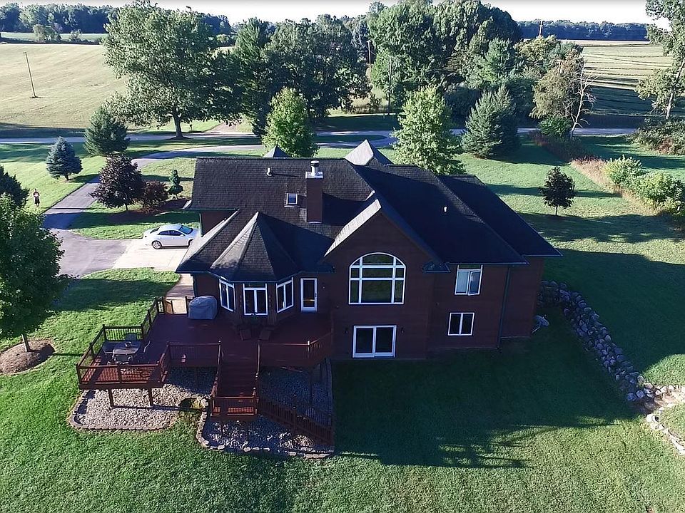 You must see the video of this immaculate, cedar home on 6 serene acres offering panoramic views. The kitchen, greatrm and formal dining rm are centered around the towering double sided fireplace begging you to get comfy and stay a while. The huge center island kitchen which boasts custom cherry cabinets, granite tops, stainless appliances, and bay breakfast nook was designed with your extended family gatherings in mind. You will love; how the sunlight pours through the oversized Andersen windows, the soaring ceilings, and the warm hickory plank floors in this home. Both the mudroom with lockers and large laundry rm have pocket doors for privacy. The walkout level offers the perfect extended living space and ample storage too. This property abundant with wildlife leaves plenty of space for your barn. Complete with a stream that runs at the rear of the wooded backdrop, you will feel like you're on vacation year round! Come fall in love with this home today!LA related to seller
