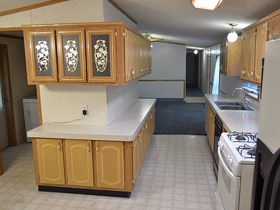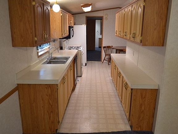 Motivated Seller! Move in ready 3 bedroom 2 bath 1998 mobile home on almost an acre of ground. 8 x 10 front deck and 10 x 12 back deck. Handy floor plan with 17 x 7 kitchen and 9 x 9 dining room combined. Kitchen has lots of cabinets. Large bedroom with its own bath. Entrance in laundry/utility room from outside. Lots of potential!!!