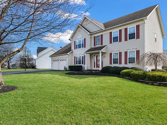Beautiful 4 BR, 2.5 Bath Colonial in Warrington Hunt situated on a corner lot. Paver pathway leads to a covered front porch. 2 story Foyer with glistening hardwood floors that flow throughout the formal Living room, formal Dining room, office and family room. The Kitchen offers solid maple cabinetry, large center island, quartz countertops, custom ceramic tile backsplash, recessed lighting & stainless-steel appliances including gas range with overhead microwave & built-in dishwasher. Large Breakfast room offers a Pella sliding glass door to a custom rear paver patio. Half wall from Breakfast room to Family room with vaulted ceiling, ceiling fan & recessed lighting. Powder room and Laundry room located off of Kitchen and offer ceramic tile floors. Open staircase with oak railing leads to 2nd floor featuring Master Bedroom with 2 walk-in closets & full bath with vaulted ceiling, double vanity, separate walk-in shower. The second level also offers 3 additional large bedrooms with ceiling fans and full hall bath with double sink & tub/shower. Full, finished Basement with recessed lighting, wall-to-wall carpet & built-in shelving plus additional storage room. 2 car attached Garage. Extended driveway. Updates include: 5/2018- all windows except Foyer; 2/2009- Kitchen; 3/2013-HVAC; 1999-Attic Fan; 11/2011- Roof (30 yr); 4/2014 Hot Water Tank; 4/2015- Rugs & HW floor (Avalon); 8/2011-Driveway widened; 7/2014- downspouts; 9/2006-Pella Slider door; 11/2016- dishwasher; 2/2009-stove & microwave; 10/2016 Garage doors. Don't miss this one!