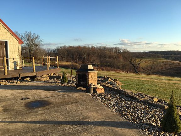 Incredible setting with beautiful views of the countryside. This two bedroom, 2.5 bath, very unique, Saltbox-style home sits on 2.5 acres. The sunken living room and "chef" like kitchen has 13-foot ceilings with combination of materials from stainless steel to shaker. Gorgeous stone gas fireplace with built-in bookcases and access shelving in the living room. Everywhere you turn are quaint architectural features. The master bedroom offers a private bath and walk-in closet. The upper bonus room is perfect for an office or could be a a 3rd bedroom. Large deck with patios and firepit to enjoy the views. A new 3-car detached garage with paved driveway. An outbuilding for your little animals or storage. New roof 2018. Call today for a private tour!