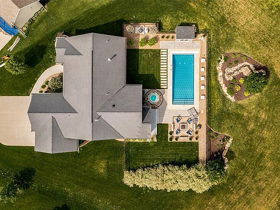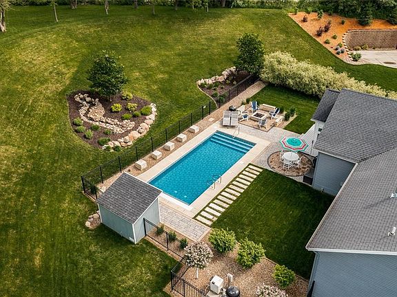 *SALE PENDING* Starry Night, Van Gogh should have seen the view from this outdoor retreat. Get ready for summer at Home with your private .84 acre yard, 25 trees, Culver's landscaping and accent lighting, paver brick patio, and gas outdoor fire pit. 14' x 32' in ground heated pool with Galena prism liner, intelliflow pump, winter Mesch retractable cover, bench and wall step. 3,004 square feet of living with expandable lower level. Oversized windows allow natural light to flow into the main living areas and incredible sunroom. This home offers the finest building selections and interior design. Amenities include professional kitchen appliances and custom designed cabinetry, etched glass pantry door, French doors, built ins, and free floating shelving. Rest is assured in the beautiful sunroom or master bedroom and bathroom suite. Enjoy a rare find garden tub and walk in master bath shower. The richly paneled walls of the full lower level bar, hand milled and stone accented island with seating show pride in ownership. Come home to relax or entertain in the recreation room or your own full bar. Additional features include: interior shutters and custom blinds, rods, upgrades lighting and counters, central vacuum, lawn irrigation, composite decking, iron fencing, laundry sink, iron board, built bench with locker hooks, radon mitigation system. Average monthly gas: $82, Electric: $166.