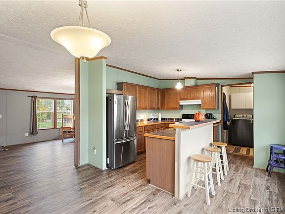 Welcome to 3198 S Lake Rd. S, Scottsburg, IN 47170! This 4-bedroom, 2-bath Double Wide, Manufactured Home nestled on a 2-acre lot is the perfect place to call home. With a 2-car detached garage and a convenient laundry room, this property offers both comfort and functionality. 4 Bedrooms: This home boasts four bedrooms, providing ample space for your family to grow, accommodate guests, or create a home office. 2 Baths: With two well-appointed bathrooms, mornings will be a breeze, and you'll have all the space you need to refresh and relax. 2 Acres: The generous 2-acre lot offers a world of possibilities. Enjoy outdoor activities, gardening, or simply unwind in your own private oasis. 2-Car Detached Garage: Keep your vehicles safe from the elements and have extra storage space. Laundry Room: No more trips to the laundromat. The dedicated laundry room adds convenience to your daily routine. Don't miss out on this opportunity to make 3198 S Lake Rd. S yours. This property offers a blend of space, comfort, and a tranquil setting. Add a little TLC and make it your own. Contact your favorite agent to schedule your appointment to take a look. Sq ft & rm sz approx. Under current 1st right.