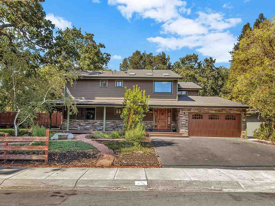 Stunning custom home totally renovated in 2017! 5 bedrooms and 5 full baths include 2 master suites. Primary master retreat with custom walk-in closet system, bathroom with free-standing spa like tub, shower with 3 heads, dual vanities, and an extra room ideal for office or nursery. Open concept main living area with beautiful modern kitchen with huge island and counter seating, expansive dining area with French doors leading to the back deck, and family room. 2 Downstairs bedrooms and full bathrooms. Huge mud/laundry room with sink, abundant cabinetry and outdoor access. Park-like quarter acre lot with towering Oak trees, lawn, wrap-around deck with ample room for seating. Minutes to trail, Acalanes High School, highways, transportation, and downtowns Lafayette and Walnut Creek dining and shopping.
