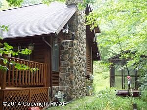 LOG,LOG,LOG!!! Built to last! This solid log and stone home is move in ready! One time homeowner takes great care with everything! Huge log trusses criss cross the main ceiling, stone fireplace has wood burner insert, great wrap around deck, grounds with huge evergreens, stone waterfall feature, 2 sheds, screened porch, AND SO PRIVATE!! 3 acres of woods to enjoy nature's sites and sounds. ADDITION DOUBLED THE SIZE OF ORIGINAL HOME - includes large kitchen, separate dining room, and large master suite with WIC, bath, and private balcony! MUST SEE TO DRINK IT ALL IN! DRY BASEMENT + MACADEM DRIVEWAY COMPLETE THE PICTURE! See photos