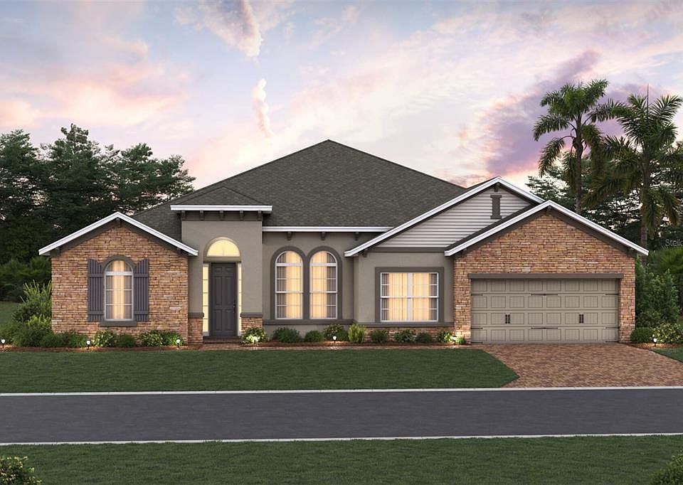 Under Construction. With this Mediterranean-inspired, single-story home, the possibilities are endless! As you enter, you will notice the panoramic view of the open-concept great room and kitchen, which separate the secondary bedrooms from the owner's suite. A separate living room and dining room work well for those wanting a traditional home feel or the convenience of a home office. Sliding glass doors off the family room lead out to the massive covered lanai, making this home an entertainer's delight. The owner's suite is a retreat of its own, with its en-suite bathroom with a soaking tub, a separate shower, and two vanities. There are also has two large walk-in closets and a separate linen closet, offering plenty of storage. The secondary rooms are located on the opposite side of the home, two of which share a Jack-and-Jill bathroom. A hall linen closet and pool bath are perfect for those days spent outdoors, as the bath leads directly out to the massive recessed lanai. Contact us to learn more about making this home yours today!