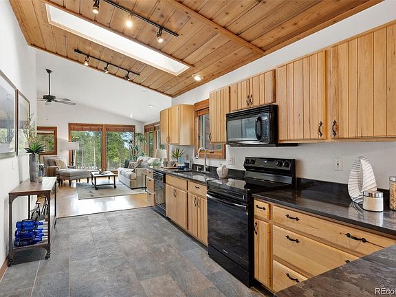 New exterior paint, sanding, caulking, etc, 7/5/2023! This home looks and lives like new. Nestled in a captivating landscape of aspen and pine forest, this home offers a comfortable, well maintained place to start living the Colorado dream. Step inside to discover extensive natural light beaming through oversized windows and highlighting tongue and groove vaulted ceilings over recently refinished floors and newer carpet, the remodeled kitchen features stunning new granite slab countertops, seamlessly blending function and fashion in a well designed kitchen with ideal workspace and a huge walk in pantry.The main floor boasts a primary suite with ensuite bath and huge walk-in closet, along with two additional bedrooms nicely separated. Enjoy the warm glow of the wood stove in the family room creating a cozy ambiance on crisp mountain evenings. Meanwhile the family room is like a tree house with huge windows bringing the forest into everyday living! The lower level is a beautifully remodeled space—with wood grain vinyl flooring, another wood stove and plenty of space. Whether you envision a gaming zone, a home theater, or an entertainment haven, this space can do it. It even presents an ideal setup for a second master suite, making it perfect for multi-generational living or accommodating guests. With direct access to the charming front patio, indoor-outdoor living seamlessly blends together. Outside, revel in the private corner lot with two sheds on a lush grassy yard that surrounds the property and a beautiful and well maintained, almost flat forest of aspens and pine —a rare find in mountain properties. The yard provides ample space for relaxation, play, and hosting gatherings. With a 2 door- 2 car garage completing this remarkable property, it’s an easy win in Conifer!