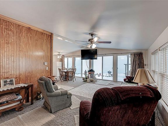 Welcome to this beautifully updated lakefront home!!! This home is located in Section three of the subdivision and includes two additional lots featuring a Detached 32x14 Garage and LARGE fenced-in yard for animals, kids or gardening. Many updates throughout the home, including four sliding glass doors that overlook the lake, vinyl siding, new carpeting and flooring throughout, tiled bathroom, solid wood doors, new Low-E windows, new metal roof, 2-car carport, and the list goes on! If you're looking for a move-in ready home on the water, this is it! Don't miss out on this wonderful opportunity!!!