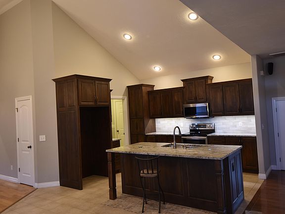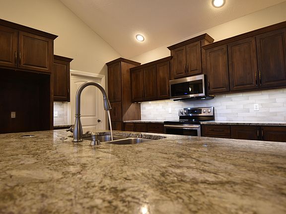This all-brick home in Frisco Trails Subdivision in South Springfield MO will WOW you with the Open floor plan, Wonderful Custom Kitchen with Granite tops, soft close doors and drawers and lots of panty/cabinet space! The island has room for gatherings and dinner! The back yard was custom designed with an open fire pit and entertaining. Built in Grille and maintenance free screened in porch! Formal Dining and Breakfast dining are next to the Kitchen! Large open floor plan with High ceilings and gas fireplace. 10Ft ceilings throughout and 8ft ceilings in the 4th bedroom over the garage. 4th bedroom can be a bonus room, office, game or private place for that teenager with a full bath! Primary Bedroom has two vanities with linen cabinet and nice large soaking whirlpool\bubble tub! Oversized 3 car garage too! Custom landscaping and outdoor lighting!
