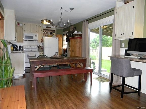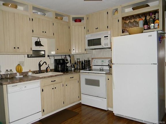 This 2 bedroom ranch has attached garage, fenced back yard and covered patio to enjoy! Beautifully maintained with a spacious kitchen with built in desk, large eating area and sliding glass doors to deck. Perfect for entertaining and grilling. Kitchen appliances stay! Windows have all been replaced and home has Arcade Electric. Full tall basement adds lots of storage.