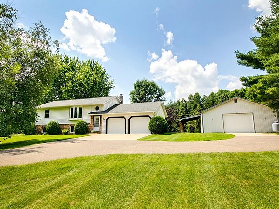 A wonderful opportunity that doesn't come around very often. 5 beautiful rolling acres on a paved road, gorgeous mature trees, paved driveway, walkout basement, the well maintained home has newer Renewal by Anderson windows, new septic in 2017, newer hot water heater and gas boiler, new pressure tank, well pump and A/C. Great location close to town yet private and peaceful, Insolated/Heated 48X30 shop, 2 car attached garage as well. This truly is the total package!