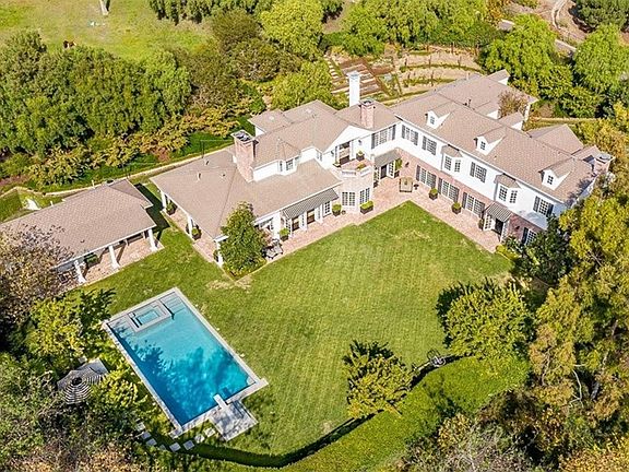 Southern Charm meets Hamptons Chic at this stunning one of a kind estate set on a coveted flat parcel of over one acre. The magic begins as you enter the gated circular driveway. Immediately, you are graciously enveloped in privacy, peace and tranquility. The exquisite grounds and manicured gardens are framed in nearly every window of the home which allows the home to be filled with an abundance of natural lighting. No expense has been spared in the finish level including: exquisite stone, Richard Marshall flooring, imported lighting, fine wall coverings, custom millwork, cabinetry and detailing. Every detail has been planned and executed to the highest level. A true entertainer's home where the inside beauty blends seamlessly with the park like grounds and where you truly feel you could be in a world of your own. The main level boasts a gorgeous chefs kitchen, family room, breakfast nook, dining room, family office/craft room, formal living, wine room, mud/laundry, 2 powder baths, and a 4 car garage. Upstairs you will find 4 bedrooms (2 with lofts), a bonus/movie room and plenty of storage. The guest house has an additional 2 rooms currently used as a gym and sitting room, kitchenette and laundry. Covered entertainment areas, bocce court, basketball, large games lawn, covered pool and spa, bbq, fruit trees, vegetable garden, and beautiful views all make this home one for the most discerning buyer. All furnishings are negotiable.