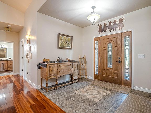 Discover the perfect blend of luxury and functionality in this stunning 4-bedroom, 4-bathroom home with 3,573 square feet of living area. This home boasts vaulted ceilings that enhance the sense of space and openness and provides ample room for family living and entertainment. The chef’s kitchen features knotty alder cabinets, sleek granite countertops, and stainless-steel appliances, creating a perfect space for cooking and gathering. Enjoy year-round comfort with refrigerated central air and cozy up by the gas log fireplace during cooler months. Situated on 2.58 acres, this property also offers solar power, a 3-Car Garage, covered RV parking with hookups, heated/cooled 40x60 shop with 220 outlets, storage loft, and in-floor heat in the shop office and bathroom. Nestled just outside the city limits, this property offers breathtaking views and an inviting atmosphere that combines comfort with elegance. Don’t miss this exceptional opportunity to own a home that perfectly balances quality craftsmanship, modern conveniences, and serene surroundings. Schedule your personal viewing today!