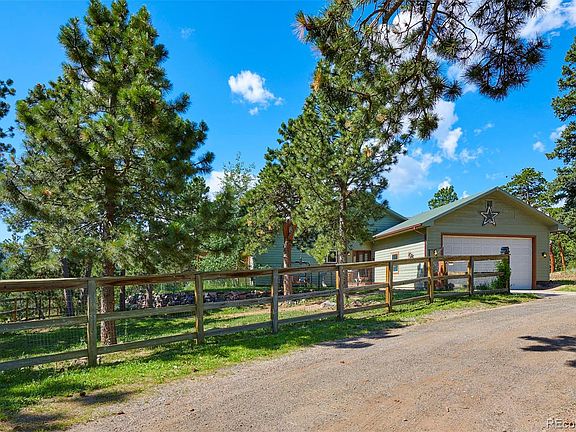 Horse Property in the Colorado Rocky Mountains with easy access to town and riding trails - ride right off your property. Open floor plan features a vaulted ceiling, gorgeous gas fireplace. Expansive windows offer passive solar and frame forested hillsides and mountain meadows. Kitchen features granite, a gas range/oven and is open to dining. Main level Master with En-Suite has its own soaking tub, step-in shower, walk-in closet and a private deck with hot tub. Enjoy peace, quiet and fresh mountain air on your south facing deck topped with a retractable awning. Passive solar. Walkout basement boasts a full kitchen, family room, 2 beds, 3/4 bath, laundry and a charming cobblestone patio. Home is surrounded by a fully enclosed split rail fence with wire mesh. Corral and loafing shed are fully fenced - on level ground. Storage sheds w/ample space for tools and toys. 9' garage doors. RV parking. Home is on natural gas and mitigated for radon, Whole house water filtration system - Water softener - RO water filter at kitchen sink - sump pump - 1800 Gal Fire Suppression Cistern - 30 mins to Boulder and Golden. 35 mins to Eldora Ski Resort. Come see why Coal Creek Canyon is one of the Front Range's favorite mountain communities.