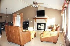 Motivated seller!! Cottage style home, with custom tile floors throughout & fireplace in living area. Open floor plan with dining room off of kitchen with beautiful French doors you can view the deer from. Master bedroom has walk-in closet. Washer and dryer/pantry off of kitchen. Newer neighborhood mostly developed with similar homes. Lake views from front patio. Charming neighborhood and close to marinas, boat slips and lake amenities! Priced to sell