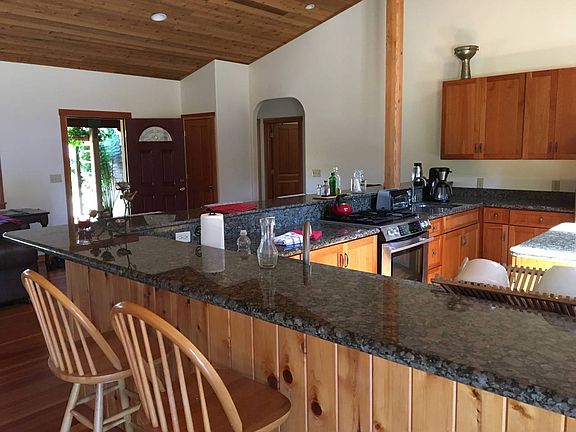 Woodshingled exterior, spacious light interior. Has huge common area, dining and kitchen with granite counter tops, craftsman wooden kitchen cabinets Douglas-fir flooring. Large south-facing redwood decks through French doors from the common area.