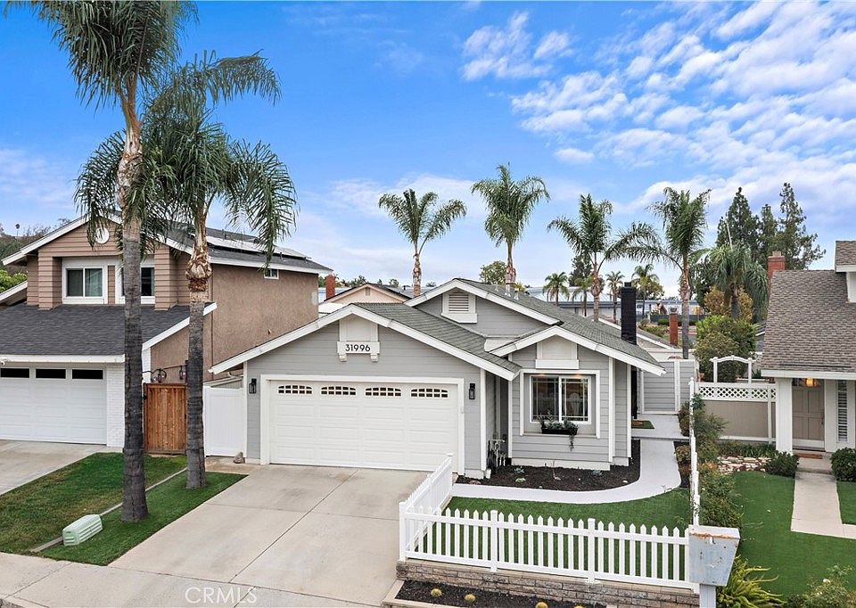 Ideally located on a peaceful side street cul-de-sac in the heart of Robinson Ranch surrounded by beautiful mountains, this updated single-level stunner is sure to impress! Upon arrival, high-pride-of-ownership is apparent with fresh improvements including newer exterior paint, light fixtures, and stylish landscaping. A white picket fence frames in the low-maintenance and useful front turf yard - a great outdoor space! An entry Dutch door welcomes you inside the large living room with a cozy gas fireplace, ascending ceiling plate with overhead fan and wired surround sound. Recently painted inside, the light and bright interior contrasts the dark hardwood flooring throughout. Just off the living room, the updated kitchen offers stainless appliances (newer range), new quartz counter tops, a new sink and faucet, a centered island, formal dining, clever bar-top seating, wainscoting, and ample Eastern-seaboard-style cabinetry for abundant storage. Large picture windows let natural light into the space and glass slider doors access the rear and side patios with an in-line gas fire pit. Very private outside and rare to come by! The family room and open kitchen create an inviting space for relaxing and entertaining. Beyond the living areas, three generous bedrooms (one currently a nursery, one used as an office with bay window and vaulted ceilings) and two nicely-remodeled bathrooms all provide comfortable, turn-key living. The primary offers his & hers mirrored closets, wainscoting, and spa-like bathroom with new vanity, dual sinks, fixtures, counter top, shower enclosure, tile, and mirror. The full guest bathroom has also been highly upgraded in similar fashion and offers a tub. Other newer improvements and values: recessed lighting throughout, light fixtures, ceiling fans, interior/exterior paint, crown molding, a finished garage with MyQ smart garage door system, additional storage cabinets, epoxied floors, washer/dryer, water heater, privacy side gate, and routinely maintained HVAC system. Just a short walk to Blue Ribbon Robinson Ranch Elementary, amazing neighborhood parks, community pool and amenities, and close to shops, dining, and entertainment, this home offers turn-key convenience and a fun lifestyle beyond.