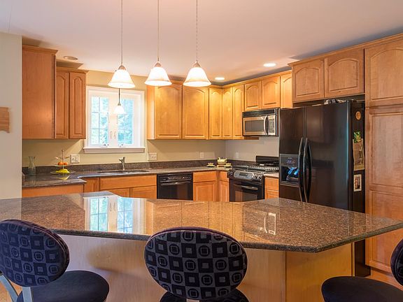 As you walk in to your new home you immediately notice the natural light in this spacious living room with hard wood floors that continue in as you enter the kitchen and dining room. Once in the large (great for entertaining) kitchen you notice the ample amount of cabinet space and granite countertops! In the dining room, relax by the propane gas fire place overlooking the back yard. This cozy, but spacious house boasts three very large bedrooms, 2 ½ bathrooms. The 1st floor master bedroom, includes the master bathroom with a jetted bath tub, stand up shower and double vanity! This home feels like a single-family dwelling, located on a total of 2.43 private wooded acres, an attached 2 car garage, central air, central vacuum, private septic, private propane, and 1,595 sq ft of unfinished dry basement with high ceilings! The home is quiet, but convenient to grocery, restaurants, gas, drug store, and additional shopping. No condo fees!