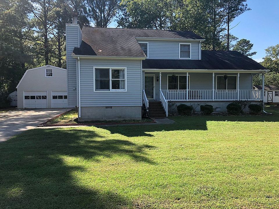 Spacious family home in beautiful Poquoson with 4BR and 3 full bath. Downstairs master bedroom with large walk-in closet and bathroom with walk-in shower and jacuzzi tub. Lots of storage space. Detached garage with large living space above. 2/3 acre lot on a private lane. All carpet replaced in 2021. Zestimate (County assessment) does not include master bedroom and sunroom. Previous appraisal records the 2,331 sq ft. Additional 400 sq ft above the detached garage with heating & cooling.