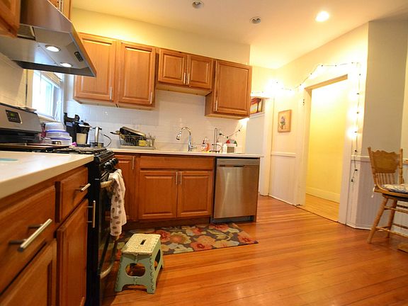 Truly spectacular 2 bath gut reno'd with a kitchen to die for! Unbelievable quality! You will smile when you see how beautiful the kitchen is! The express buses (501 503 and the 64 and 57, YMCA, multiple food options, Mass Pike and are at the end of your street. For everything that this place offers, the options in Oak Square make it even better. Plus there is a yard and dedicated laundry in the basement too! One month broker fee applies.