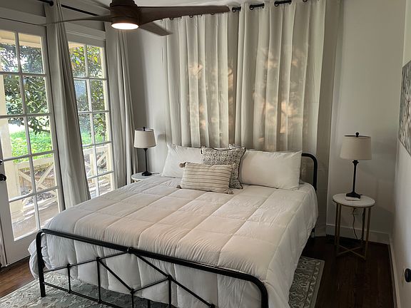 This historic 1935 mill home has been completely renovated and updated. It is located in Columbus' Bibb City Mill area where you will be a 15-minute drive to Ft. Moore, a 10-minute drive to Columbus State University, and a 5-minute drive to downtown shopping, dining, and Columbus' Riverwalk along the incredible Chattahoochee River. Fully furnished, the 1-bedroom, 1-bath beauty has a king-sized bed that is as comfortable as your bed at home. The full-service kitchen lets you prepare meals and/or cocktails while all Columbus has to offer is just minutes away! As you step inside, you'll be greeted by a spacious and tastefully decorated living area. The floor plan connects around a decorative fireplace the living room, dining bar area, and fully equipped kitchen, creating a welcoming space for relaxing. The living room features ample seating and a large flat-screen 55" TV, perfect for watching a movie or streaming your favorite show. The kitchen is a chef's delight, complete with modern appliances, ample counter space, and all the necessary utensils. Whether you're making your favorite cup of coffee in the morning or wanting to prepare dinner, you'll find everything you need at your fingertips. The thoughtfully designed bedroom is furnished with a comfortable king-size bed to ensure a restful night's sleep. In the bathroom, you'll find modern fixtures, clean towels, and complimentary toiletries for your convenience. Additionally, the home offers the convenience of a washer and dryer. Step outside the bedroom and discover the large backyard, perfect for relaxation. Unwind on the back porch enjoying the cozy ambiance and views across city owned greenspace and the adjacent neighborhood park. Driveway will hold two cars and on-street parking is also available. Welcome traveling nurses, military and professionals. Short-team lease application and one-month's deposit required. Monthly cleaning and yard maintenance can be requested for an additional cost.