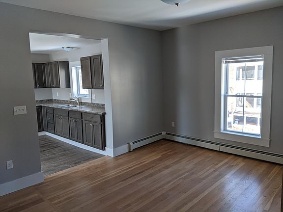 Be the first to live in this fully renovated 1st floor, 2 bedroom, 1 bath apartment for rent. This apartment is bright and spacious with approximately 905 s.f. of living space. Features include: large kitchen with plenty of cabinet and counter space (stainless steel appliances on order); in unit washer/dryer hookups, beautiful hardwood floors, new windows, and a great open yard. Shared off street parking as well as the option of storage / parking in one bay of a detached garage once renovated (hoping for spring but TBD; additional rental fee for garage applies). The duplex has been converted to natural gas (FHW) heating and has a new furnace. Landlord will take care of lawn mowing and snow removal from the driveway. We anticipate that this apartment will be ready in April, provided we are not delayed due to the Covid-19 pandemic. Additionally, due to the pandemic and to comply with the Governor's order, we will show the unit via video conferencing. $35 criminal/ background/rental history/credit check fee applies per adult to consider applications. $1,325/month + utilities. No dogs please. Owner pays electric for common areas, basement and garage. Tenant to pay all other utilities.