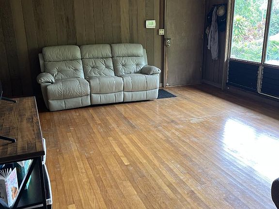 Enjoy fresh ocean breezes on the Hamakua Coast 25 min from Hilo. Kitchen remodeled recently with solid surface countertops and new appliances and air conditioner. Spacious living and dining rooms. Tongue and groove redwood interior. Two car carport with gated access. Laundry and exterior bath off carport. Owner lives on an adjacent property. Pictures show furniture of current tenant which is not included. Rented unfurnished. Tenant responsible for propane, water, electricity and fiber optic internet. No Smoking allowed. Tenant is responsible for all utilities and small yard and garden maintenance. Minimum lease one year with first month and security deposit due at time of lease signing. Monthly rent negotiable for a longer term lease.