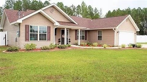 Built in 2017, this charming 3 bedroom 2 bath home features an open, split floor plan with beautiful wood tile flooring in the main living space and carpeting in all three bedrooms. Over 1/2 acre lot fully fenced with vinyl privacy fence. Located at the end of a cul de sac, this home is in the perfect location. USDA, FHA, VA eligible.