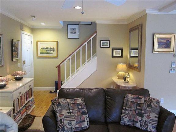 Just a 10 minute walk to the MacMillan Wharf and the fast ferry! This in-town location is perfect for a summer home and weekend getaways. A beautiful townhouse with many updates, in a 3-unit association. The first level offers an open floor plan with a gas fireplace living and dining area with an updated kitchen featuring stainless steel appliances and hard surface counter tops. A full bath with beautifully custom tiled walk-in shower completes this level. The lower level has a large media room with HDTV and surround sound and ample storage space. In addition there is a utility room with a full washer/dryer. The second level has two full good sized bedrooms with a completely renovated bathroom. There is a finished attic with ample storage space. An exclusive use fenced in outdoor patio and assigned 2 car parking complete this unit.