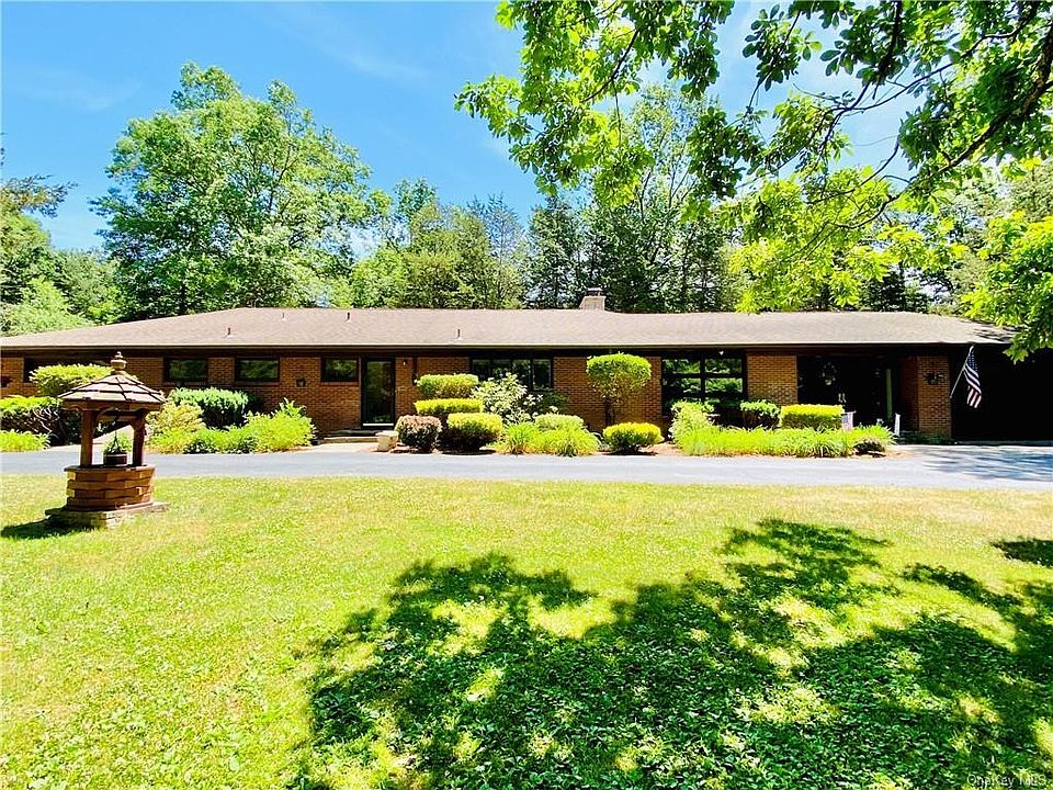 Welcome Home to this beautifully maintained spacious ranch home sitting back on 1.9 manicured acres, Jump into summer and enjoy the beautiful 20 x 40 inground fiberglass pool with fenced in brick paved patio . Grand entry foyer leads to spacious center island kitchen, LIving Room and Family Room each have a wood burning fireplaces to enjoy. There are 4 bedrooms and 2.2baths. This lovely home is light and bright with gleaming HDWD floors on the main level. Lower level has a large 1485 sq.ft. finished basement with wet bar, 1/2 bath and newly carpeted. Garages with room for six cars or workshop. A true country feel yet close to Rt 9 shopping & 10 minutes to Metro North train. Call for details.