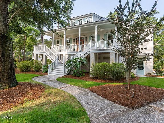 Enjoy Your Best Lowcountry Life in this Lowcountry Stunner with Coastal classic details. This home has unparalleled views of the marshes of Battery Creek located on Deer island within the Islands of Beaufort. This home was designed for Lowcountry casual living and easy entertaining. This Deer Island home offers the finest craftsmanship with all the comforts and upgrades by one of Beaufort's Premier Home Builders, Powell Brothers Construction. Enjoy expansive views, spectacular sunsets and a truly impressive, custom designed home by Allison Ramsey. This home was designed with a large, open first floor that is the quintessential room for entertaining. The first-floor incorporates a luxury, gourmet, entertaining kitchen, and over-sized Vetrostone Island Top with Oyster Bay, surface from Yemassee, SC. The kitchen is equipped with a Thermador 48 inch duel fuel gas cooktop, electric range with steam oven and a Sub Zero refrigerator. The interior boasts a stunning layout complete with Amish reclaimed mixed species flooring that runs the staircase railing and floor registers. A reclaimed, antique door in the front room, originated from Brooklyn, New York frames the office or sunroom. This home boasts three bedrooms, three 1/2 baths with an extra gathering space with two extra-long twin bunks with seating area and an elevator from the garage to the first level of the home. The master suite is on the main level with large bedroom and sitting room. The master bedroom has two expansive walk-in closets before entering the master bathroom. Spend some tranquil time in the large walk-in shower with a double vanity and tower center. Relax in the large living room with a fireplace opening up to expansive panoramic water views that look onto extensive landscaping and hardscape. There is an amazing amount of storage space throughout with a combination, multi-purpose laundry and pantry room. The garage is large enough for four cars and storage space. The backyard overlooking the water is an excellent backdrop for fishing or kayak trips. The beautiful outdoor natural oasis that awaits you is a definite Lowcountry stunner that looks out to the panoramic views of pristine marshes of Battery Creek. The resort-style landscape lighting and outdoor living space creates a wonderful atmosphere. The home is professionally decorated with high end furnishings and home is being sold completely furnished. The attention to detail in the design and furnishings is impressive, and the location on Deer Island within the Islands of Beaufort adds to its appeal. Islands of Beaufort features amenities to include the Belle Grove Clubhouse, two community docks, playground, pool, tennis courts and fitness center and walking paths. This home is situated in the coastal community of Islands of Beaufort where Lowcountry Living awaits you.