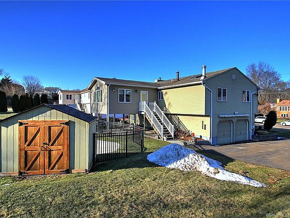 Located in "Eastwood Estates", pride in ownership is evident throughout this oversized custom built Contemporary Raised Ranch home. The spacious main level features an open layout with cathedral ceilings and sky lights. The formal living room with fireplace and hardwood flooring is the perfect place to be for cold winter nights. Large fully equipped kitchen with abundant cabinets, Corian counters, tile floor, skylight and eating area. The oversized sun filled family room with vaulted ceiling overlooks the rear yard. Master bedroom suite with full private bath and fireplace. Two additional nice sized bedrooms and full bath complete the main level. The lower level features a fourth bedroom, den/office, half bath with laundry, mud room and 2 car garage with retractable awning. Central air conditioning. Spectacular Gunite heated in-ground pool with separate spa. Gorgeous professionally landscaped lot. New roof shingles in 2011. Great commuter friendly location close to downtown New Haven, train station, hospitals, and colleges/universities as well as other shoreline communities. The total square footage includes two finished rooms in the lower level.