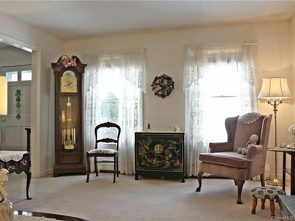 This Bunker Hill Cape perched at the end of a cul de sac, provides privacy as well as amazing views of the Litchfield Hills & is ready for a new owner to love it as much as the current owner does. The tiled, formal entryway is flanked by a spacious living room w/ fireplace to the left & a large formal dining room w/ maple hardwood floors to the right. A swinging door separates dining room from eat in kitchen, which could be helpful if the spagetti sauce explodes, just before your dinner guests arrive. When they remodeled, the sellers entended the kitchen, adding maple cabinets & hardwood maple floor to create a durable kitchen that will stand up to the test of time. To the left of the kitchen is a comfy family room w/ a French door leading to the wood deck, while to the right of the kitchen, w/ direct access to the 2 car garage & the low maintenance backyard, is a mudroom the seller currently uses as an office, which leads to a convenient, updated 1/2 bath & laundry room. Upstairs you'll find an updated full bath w/ tub & 3 large bedrooms including a master w/ full bath. Access to the unfinished attic is found inside the master BR closets. Roof was done in 2010. Furnace is serviced yearly & seller has all service records. Some wallpaper on the main level. Located w/in walking distance of Scofield Park, Silas Bronson/Bunker Hill Library. Minutes from routes 8 & 84, this is a super easy comuter location. Close to shops, dining, health clubs, hospitals & much, much more.