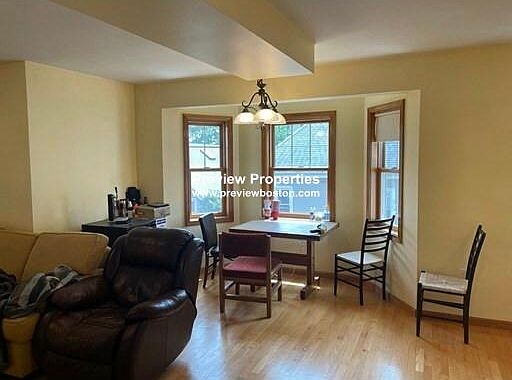 Spacious 5BR/2.5Bath apartment recently renovated, featuring open layout, office den, large bedrooms, dining room, porch, eat in kitchen, dishwasher, disposal, microwave, ample counter space, stainless steel appliances, granite countertops, recessed lights, new windows, central a/c, gas heat. Freshly Painted, one off-street spot included, no pets, available 9/1.