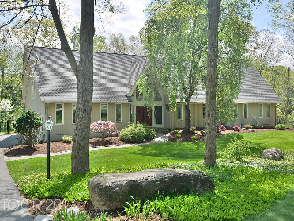 Welcome to your own private oasis. This beautiful, light filled 4 bedroom, 3.5 bath contemporary sits at the end of a cul-de-sac on a spectacular property with free-form swimming pool and clay tennis court. Open floor plan with beautiful windows and views throughout. Striking entry foyer and large dining room have walls of windows and vaulted ceilings. Elegant formal living room is a great space to entertain. Newly renovated kitchen with Caesarstone Quartz counters/island and top of the line appliances opens to a large great room with beautiful fireplace and wall of windows and doors that open to new decks. Large master suite on first floor with walk in closet and master bath has it's own private deck. Office and laundry room complete first floor. Three additional bedrooms upstairs. Large bonus area over garage and partially finished walkout basement add even more living space to this spacious and beautiful home. Make this very special home your own! - Basement: FULL Walkout, Partially Finished with FULL BATH and FPL