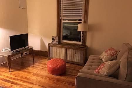 Sunny duplex (entire 2nd and 3rd floor). Walk to Rosi Square and commuter rail. Huge backyard. Front and back staircases. Extra room can be 5th bedroom or study. Currently furnished but I will remove everything. owner pays water