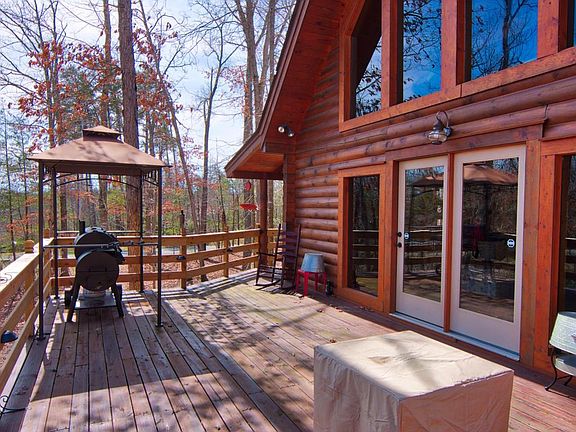 Gorgeous Open Concept Cabin style retreat on a small Lake/Pond. Enjoy boating off your very own Dock. This cabin has living space on all 3 levels. Enter into the Cathedral ceiling main living space with a wood burning fireplace & floor to ceiling windows that brings in the outdoor NATURE. 2 bedrooms on the main level, Master plus a separate retreat area on the upper level, & half of the basement is finished with its own Double door walk out to a private patio overlooking the lake. The rest of the basement (Not figured into the total square footage) is partially finished. There is a FULL bathroom on each level. Park your cars in the 4 CAR Pole Barn with additional storage. Covered & open Decking front & Back OVERLOOKING the lake. Well runs at 55lbs pressure per minute. Priced to SELL