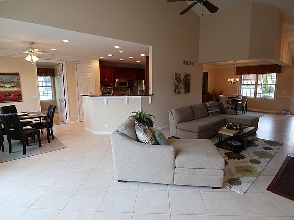 Stunning & spacious single-level home situated in Regency at the Woods South Barrington. Perfect for those 55 and better looking for a maintenance free lifestyle! Enjoy the walking paths, swimming pool, tennis courts, clubhouse and more. Located near major stores, popular restaurants and entertainment venues. Premium cul-de-sac lot with pond view from almost every room - including the sunroom! The connected large great room has beautiful cathedral ceilings & a fireplace. Separate dining room with pan ceilings. Master suite with an extra large walk-in closet, new upgraded shower with floor to ceiling glass and a walk-in whirlpool tub. Huge lookout basement ready to be finished, plumbing and furnace already roughed in. Custom window treatments throughout. Equipped with a full house generator in case of power outages during severe weather, and much more!