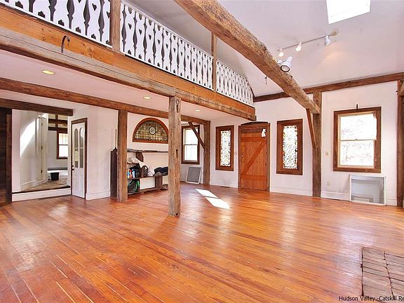 Location is everything. This Craft Style home is tucked down a short private road just off the Village of Stone Ridge. The impressive wood and stone exterior blend into the surroundings offering a great country feel. Step inside to soaring ceilings, hand hewn beans and glistening wood floors. Unique stained-glass windows accent the front and back of the home enhancing the charm. The large kitchen and dining area are a fresh clean slate for the buyers' imagination. Just off the dining area is a bluestone laid screen porch made for soaking up the afternoon sun. The second floor has two loft style bedrooms and great wood floors. Step to the lower level where the home continues to shine, a large family room/den has the same great beams and plenty of light. There is also another office or bedroom if needed. From the lower level you have access to the back yard. Great location with loads of character make this a wonderful find.