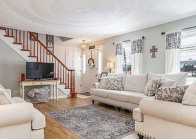 What a spacious home! You'll love the beautiful newer, Pergo floors in the living room, the white-washed fireplace in the cozy sitting area, and the wood-mode kitchen cabinetry open to the dining room. Access to a brick patio, with grill and firepit for outdoor entertaining. 1st Floor large master bedroom! Spacious full bathroom with a whirlpool bathtub and laundry. The second floor features two more spacious bedrooms, a full bath, and an unfinished storage room. Gas heat, central air, and central vac! All utilities are included in the rent
