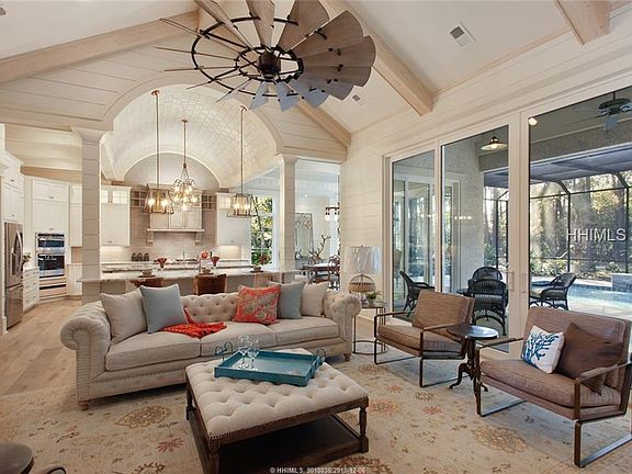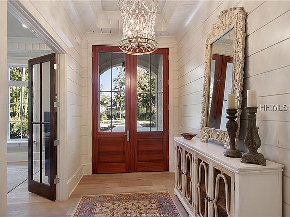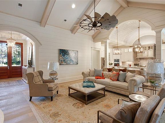 This home is the epitome of the Berkeley Hall Lifestyle featuring indoor/outdoor living on a grand scale. This model home by Berkeley Hall Premier Builder ACH Custom Homes features everything you would expect in an outstanding model with additional outdoor features including a private putting green, fire pit, and screened atrium/lanai with pool, spa, fountain, fireplace, and expansive summer kitchen. The great room and kitchen walls feature ship-lap and European White Oak flooring. The curved, tiled ceiling above the kitchen is extra-special. A bonus room above the garage can be a 4th bedroom, home theater, or game room.