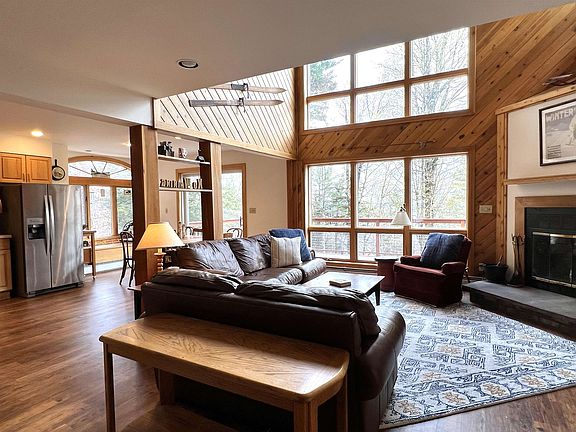 Incredible opportunity to own a piece of Vermont. Located on a quiet road just a short drive to the Stratton Mountain Resort, this delightful home is not to be missed. This single family residence features 4 bedrooms, 3 full baths and a half bath, new wood floors throughout as well as a new roof and upgraded deck railing. Main floor plan includes a spacious kitchen with all new appliances, dining room, beautiful large living room with fireplace for cozy ambience.  Second primary bedroom in the finished downstairs area and plenty of storage.  Attached 2 car garage with ski room just inside the house, and another bonus storage room off BR 4. Offered fully furnished.