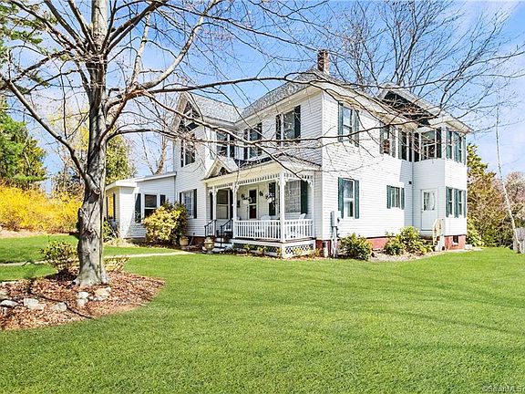 Grand Queen Anne Victorian with a fantastic location at the end of a cul-de-sac in historic Belltown along beautiful Bevin Pond Classically built in 1903, this home has all the original details you would expect with a first floor addition that blends seamlessly expanding your living options. You enter the main floor to a light-filled parlor. French doors open to the Great room with soaring, cathedral ceiling, composite floors, and balcony landing perfect for a spacious family/game room. The newly renovated main floor kitchen features new stainless appliances, eat-in area, practical pantries, enclosed glass porch with the formal dining area fit for the largest gathering. Designated spaces are repurposed for a guest bedroom with a separate entrance and a master suite with a sitting room, bedroom and access to the expansive composite outdoor deck. Home features a second story apartment with a full kitchen, spacious bedrooms and a separate front and rear walkup. Would make a great in-law apartment. A full walkup attic offers tremendous storage or use as future living space. Gorgeous reclaimed hardwood floors thorough all living spaces, new mechanicals, a full basement and workshop area, detached garage, even a Chicken Coop for your fresh eggs Walk to schools, downtown and all amenities including the rail trail for biking, hiking, and Lake Pocotopaug.