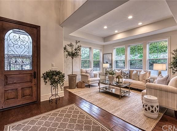 Welcome to 32 Birkdale, a Stunning 5 bedroom 4 bathroom plus bonus plus office plus guest quarters home on a huge corner lot in the Classics neighborhood of Coto de Caza. Experience the best of custom upgrades and designer finishes including wood trimmed accents throughout, hardwood floors, beamed ceilings, dazzling chandeliers and more! Private courtyard entrance leads you to grand front door with wrought iron detailing. The kitchen is a chef's dream complete with stainless steel appliances, double oven, built-in Viking Professional range gas cook-top with range hood, center island with counter seating, granite counters and walk-in pantry. The kitchen opens to a beautiful family room centered around an immaculate built-in wall entertainment piece and stacked stone see-through fireplace. Beyond the fireplace lies an elegant dining area with plenty of room to entertain guests. Private executive office comes equipped with a wall full of built-in shelving and storage. Upstairs master suite is the perfect getaway with high ceilings, fireplace and views of the Coto de Caza Valley. The master bath boasts his & hers sinks, vanity area, separate tub and shower. 3 secondary bedrooms and a bonus room complete the upper level. Huge entertainer's dream backyard features private sport court, spa, fire pit and outdoor kitchen cabana with built-in BBQ and counter seating. Separate guest house with its own entrance and heating and air conditioning.