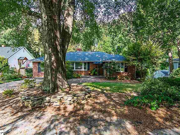 BACK ON THE MARKET! Buyer financing fell through. Fantastic location just a few minutes from downtown Greenville, I-385, and Bob Jones University. The 26-acre Timmons Park and its premier disc-golf course, pickle ball courts, baseball field, hiking/biking trails and playground are just down the street! This well maintained classic mid-century 3/4-bedroom, 2 1/2 bath brick home has it all, including many updates giving you the charm of the old, and the conveniences of the new. Classic elements include picture molding and hardwood floors throughout, built-in cabinets and two working fireplaces, one with gas logs, the other wood burning. A side entrance leads into a room used currently as a music studio, which could also function as a formal dining room or office. The custom kitchen includes oak cabinets, stunning River Gold granite and stainless appliances, including a dual-fuel cooktop and convection oven. Downstairs is a small workshop, a large utility/laundry room with extensive counter space for crafts or hobbies, a spacious den with fireplace, and a separate living suite. The basement suite with bedroom, bathroom and full kitchen could function as an in-law residence or rental. This walkout level opens to a gated and fenced patio overlooking the back yard. The back yard features a 10 x 12 storage/workshop building with electricity and ramp access. The top portion of the back yard is fenced for pets, and the lower is your personal wooded nature sanctuary, including a creek. Roof, HVAC (both AC and furnace) and rear fence are new in 2019. The electrical system was upgraded to code by owner, a certified electrician, who also added motion security lighting. Stained glass and appliances convey with the house. (The wood stove does not). Dont miss this opportunity to own a distinctive home between the historic Overbrook and North Main neighborhoods, in the shadow of the Gassaway Mansion. Call today for additional information or your private showing.