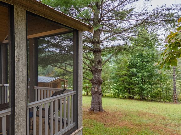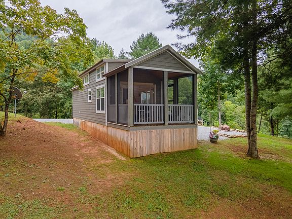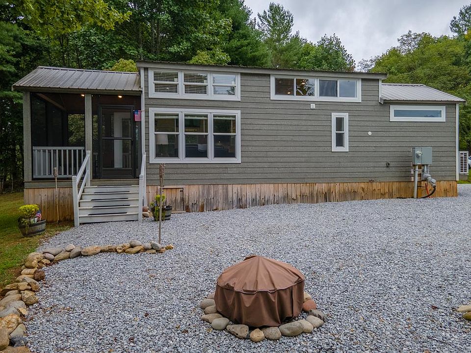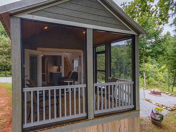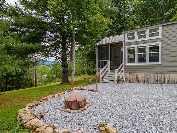 Perfect Vacation or live like your on vacation all the time in this 2020 Tiny Home on 1.38 acres w/Mountain views and ample parking in the mountains of NC. Home is located in unique Gated community that allows Tiny Homes, RVS, and Residential Homes. Home is fully furnished! Kitchen features Stainless Steel Appliances, Farmhouse sink, ample cabinet space w/under cabinet lighting, eat-in bar, and quartz countertops. Also features full bath with large walk-in shower and hallway stacked dryer and washer, Bedroom boasts built-in queen bed, 2 closets with sliding barn doors, built-in dresser & exterior door with built-in blinds. Living Room includes 2 couches/recliner and one converts to twin for extra sleeping, French Doors w/Built-in Blinds, window blinds and vaulted ceilings. Spacious loft area is carpeted and comes furnished with 2 full mattresses for sleeping or use space for storage. Screened in deck w/mountain views. On demand tankless water heater, 9000 BTU mini-split heating and cooling units, luxury laminate flooring on main level & shiplap walls. Owner calls his workshop a Handy house man cave w/power. Just bring your personal belongings. Its ready for you to come relax!