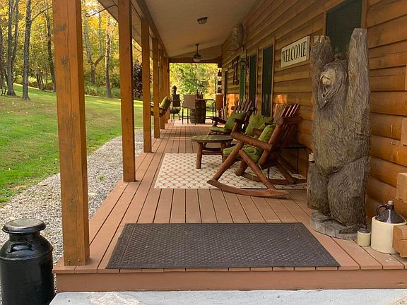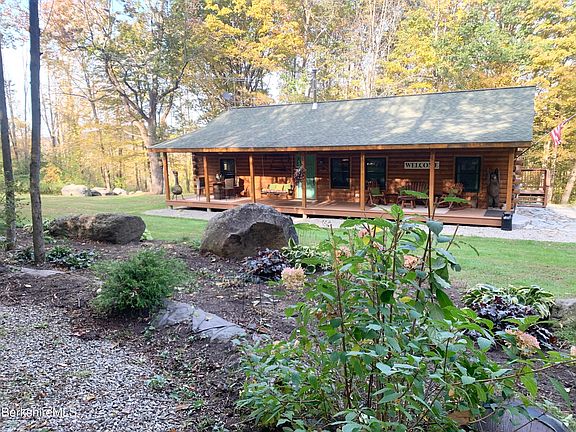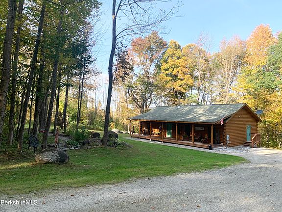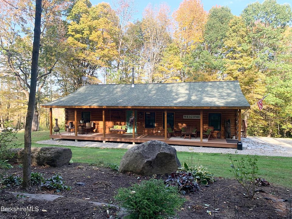 A quintessential S.Berkshire hills log home with acreage and a view! Park like frontal grounds provides an oasis for anything your heart desires from corn hole and meditation to archery and social gathering. The back acreage provides a mountain view. There is also a covered front deck and back upper deck for outside enjoyment. The home is move-in ready with an open floor plan boasting a spatial flow that still remains cozy and comfortable. New appliances, efficient propane furnace and wood stove for integral warmth and added peace of mind. Huge basement space for further consideration to finish. Exterior was washed, stained and treated in 2023! Beautiful Blandford offers wild and scenic region but close to Mass Pike and all Berkshire attractions. Only 10 minutes to Otis Reservoir. First showings 10/10.