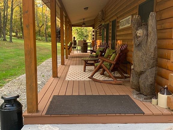 A quintessential S.Berkshire hills log home with acreage and a view! Park like frontal grounds provides an oasis for anything your heart desires from corn hole and meditation to archery and social gathering. The back acreage provides a mountain view. There is also a covered front deck and back upper deck for outside enjoyment. The home is move-in ready with an open floor plan boasting a spatial flow that still remains cozy and comfortable. New appliances, efficient propane furnace and wood stove for integral warmth and added peace of mind. Huge basement space for further consideration to finish. Exterior was washed, stained and treated in 2023! Beautiful Blandford offers wild and scenic region but close to Mass Pike and all Berkshire attractions. Only 10 minutes to Otis Reservoir.