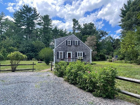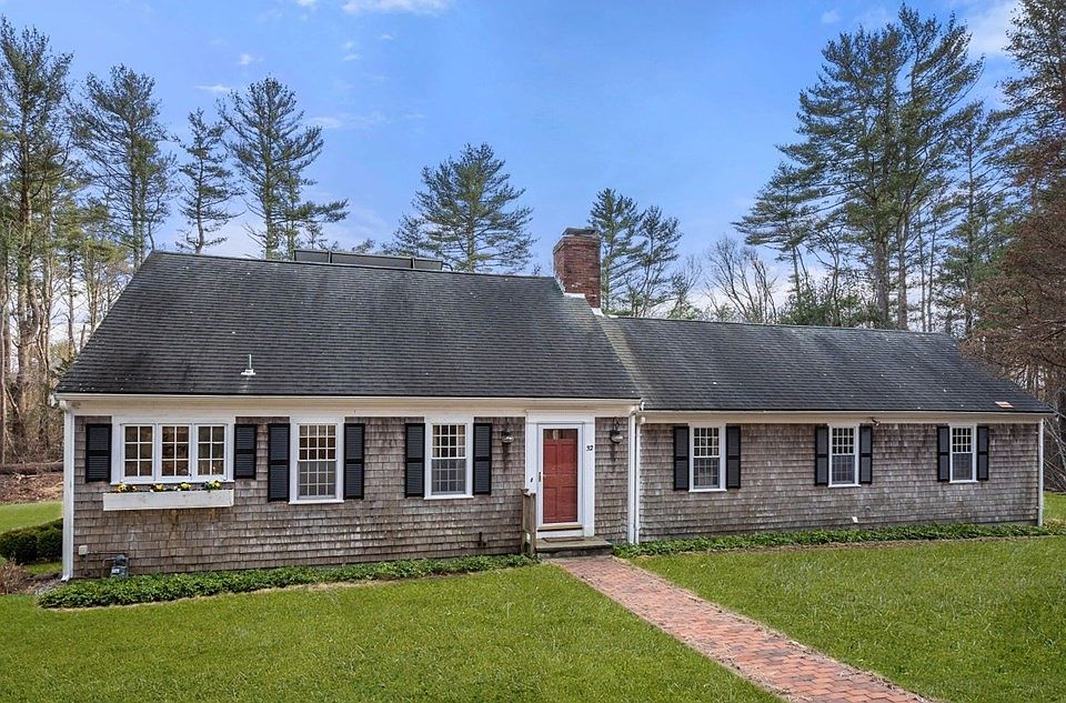 Here is your chance to get into one of Duxbury's prime locations for under 1 Million! 32 Blueberry is down a private lane in a great neighborhood with sidewalks to the School Complex and Millbrook Shopping Center. This Royal Barry Wills Cape features 3 bedrooms, 2 bathrooms, and sits on over 1.5 acres. The kitchen is open and bright with stainless steal appliances and granite counter tops. The front to back living room features a giant picture window to the lawn, a wood burning fireplace, and beautiful moldings throughout. Step down to the separate den and enjoy another cozy fireplace under the hand hewn beams. A first floor addition was put on in the 80's to accommodate a first floor primary wing with a huge bath, laundry area, and a large walk in cedar closet. This home is just waiting for the next generation of memories! Please be considerate when driving down the lane.